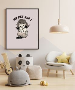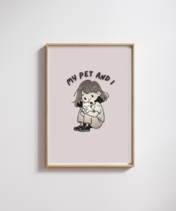 Celebrate the sweet bond between a girl and her furry friend with this charming “My Pet and I” digital wall art. This heartwarming illustration features an adorable cartoon girl cuddling her cat, making it the perfect decor for pet lovers, kids’ rooms, nurseries, or cozy corners of your home.