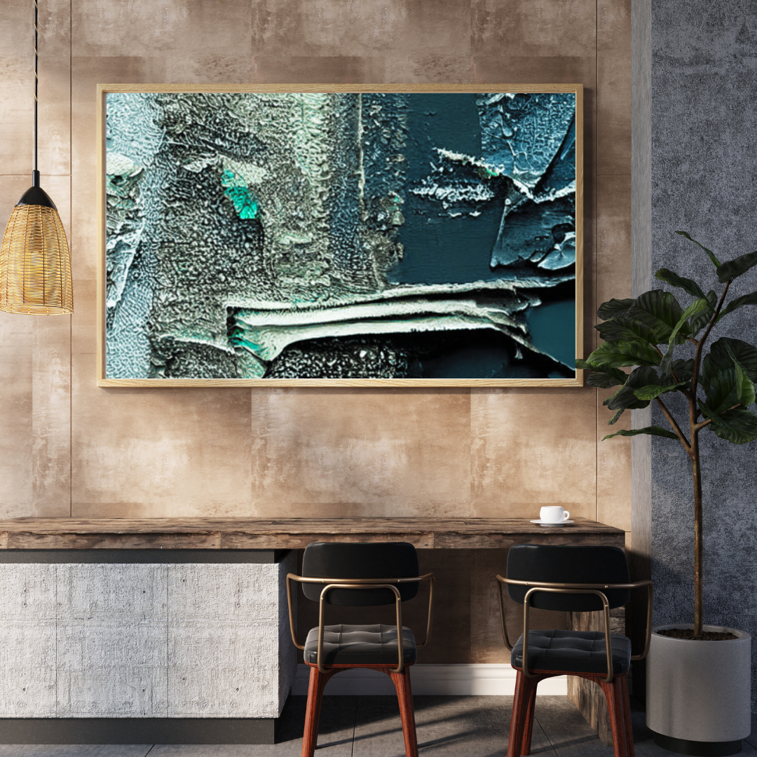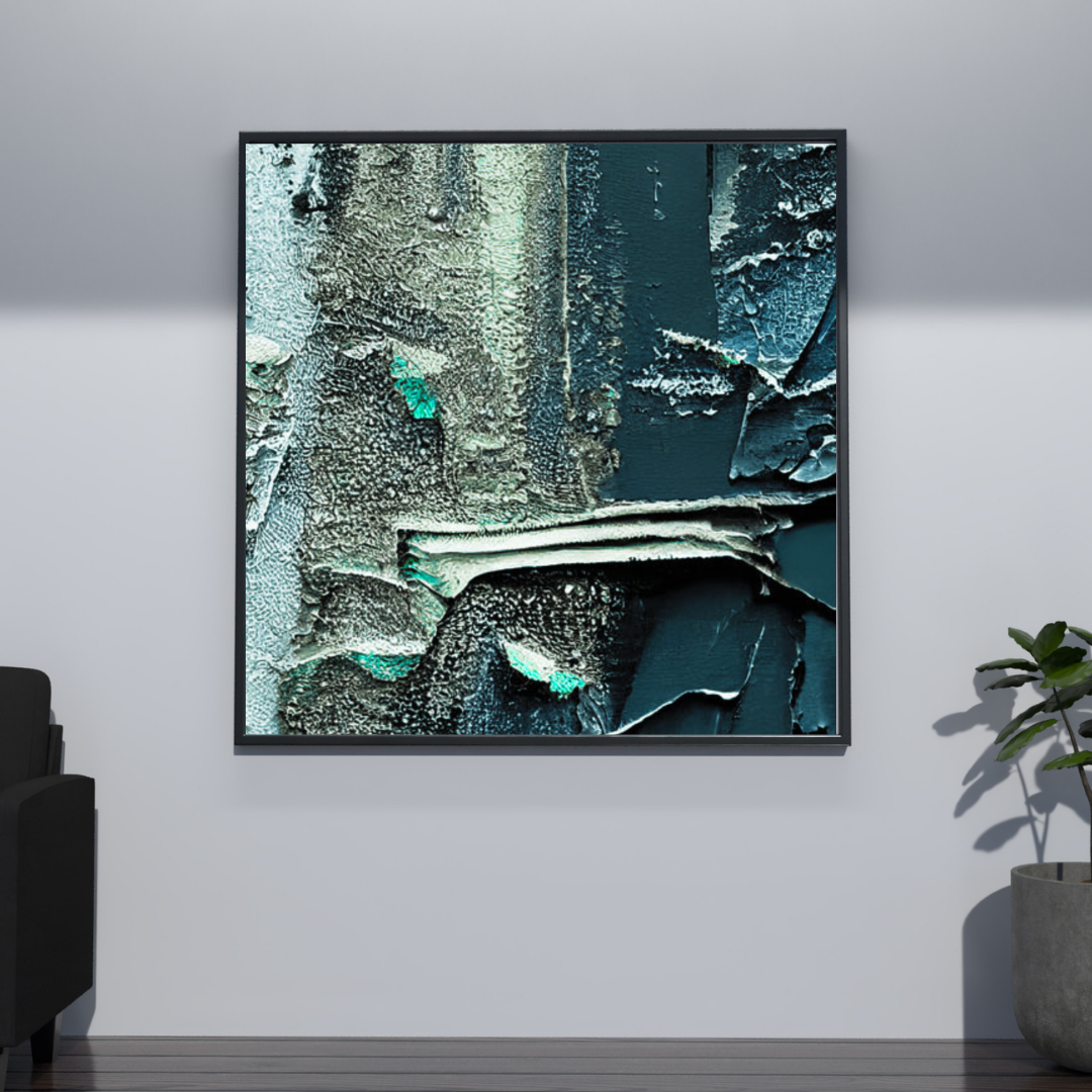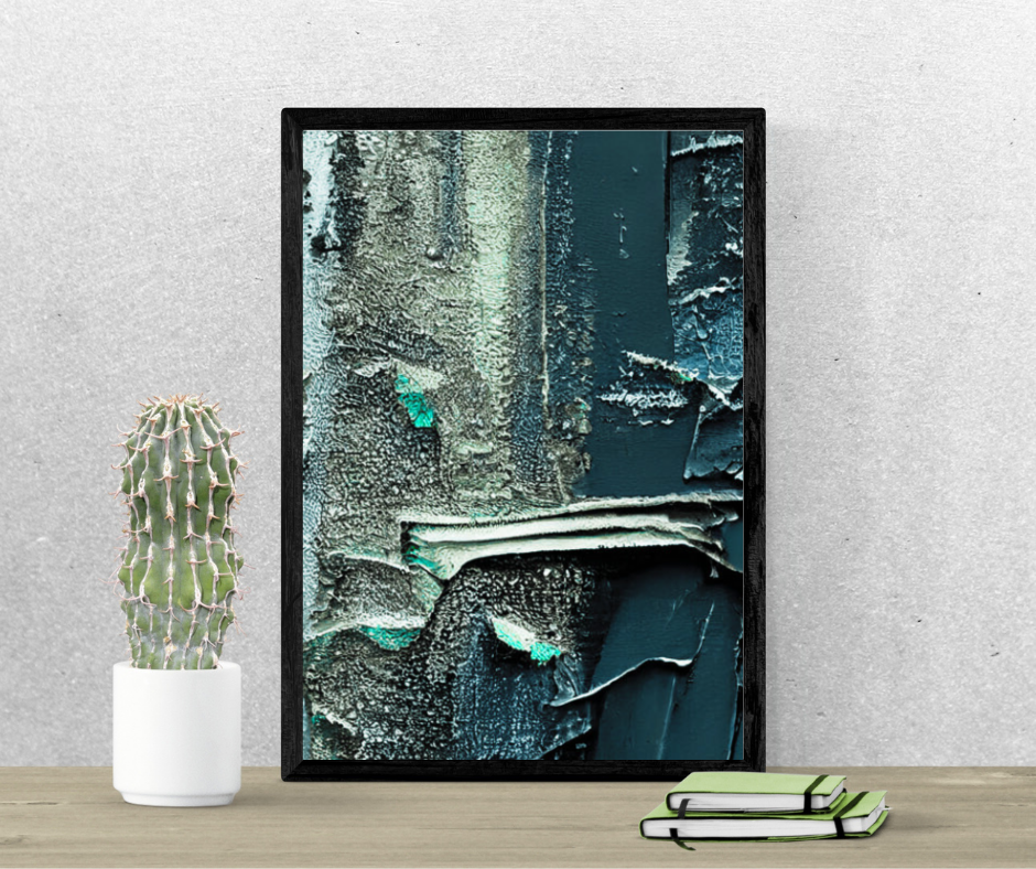 Add a bold, modern touch to your interior with “Textured Depth,” a striking abstract digital wall art that fuses raw texture, layered brush strokes, and cool-toned elegance. This high-resolution printable design showcases shades of teal, slate, and silver with a tactile, almost industrial finish—perfect for lovers of moody contemporary aesthetics.